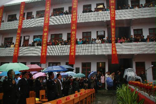 在绵绵细雨中,结对帮扶暨“法律六进”法治文艺演出给当地群众带来一顿丰盛的法治文化大餐。演出在歌舞《欢乐毕兹卡》拉开了序幕,歌曲《越走路越宽》、小品《请客》、笛子独奏《骏马奔驰保边疆》等精彩的节目将现场气氛不断推向高潮。演出过程中还穿插了捐赠仪式。市司法局捐赠2万元、办公桌椅设备100台套、法律与农业科技书籍光盘100册(张),市劳教所捐赠1万元,长阳司法局捐赠1万元,诚业、三峡、陈守邦、普济、君任、七君、竞成、民基、夷陵、诚昌等10家市直律师事务所分别捐赠5000元。演出活动在歌舞《我们与法同行》中谢幕。