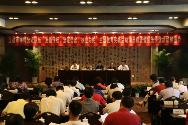 6月17日上午,宜昌市司法局召开全市律师公证行业“发扬传统 坚定信念 执业为民”主题教育实践活动动员部署暨创先争优活动推进会,要求全市各级司法行政机关、市律师协会和广大律师、公证员统一思想,提高认识,创新方式方法,强化工作措施,发扬光荣传统不忘本,坚定理想信念不动摇,坚持执业为民不懈怠,把主题教育实践活动、创先争优活动和各项律师公证工作落到实处,以优异的成绩迎接建党90周年。