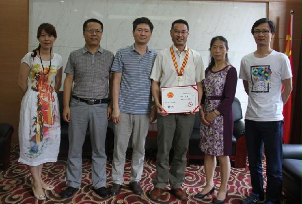 6月19日上午,市总工会党组成员、纪检组长徐圣凤同志带队来到市司法局,为2015年宜昌五一劳动奖章获得者——宜昌市公证处主任严继宁同志颁发奖章及证书,并向严继宁同志表示祝贺。市司法局党组成员、纪检组长胡滨代表局党组向市总工会、市直机关工委长期以来对司法行政系统的关心支持表示感谢。