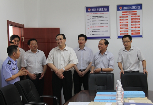 7月28日,宜昌市委副书记、市长马旭明就全市“六五”普法工作及司法行政工作进行实地调研。马旭明要求,全市司法行政系统要以争当全省司法行政工作排头兵为目标,不断提高工作效率和服务水平,为宜昌大城建设提供有力的法治保障。市政府秘书长王均成,市政府副秘书长、研究室主任覃进,市政府办公室副主任刘春林,市政府督查室主任向宇飞,市司法局党组书记、局长张德才等陪同调研。