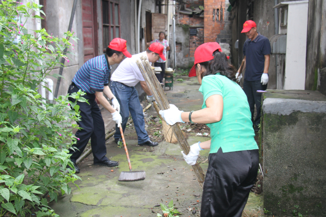 宜昌市司法局机关干警与学院街社区工作人员一起开展环境整治