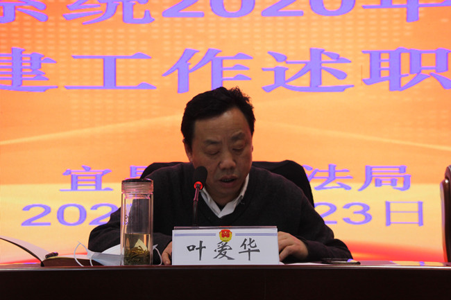 局党组书记、局长叶爱华对11个现场述职的党组织书记抓基层党建工作进行逐一点评,肯定成绩、指出不足。他在总结讲话中指出,市直司法行政系统各级党组织深入学习贯彻习近平总书记在中央和国家机关党的建设工作会议上的重要讲话精神,紧扣“三表率一模范”目标要求,坚持“围绕中心、建设队伍、服务群众”,持之以恒强基础、抓规范、严治理、提质效,为实现“全国先进、全省一流、市州标杆、宜昌特色”的奋斗目标,助力宜昌实现“一高双争三决胜”做出了积极贡献。
