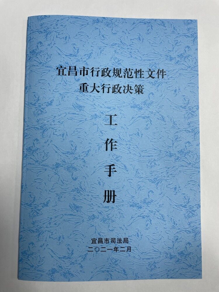 今年3月,市司法局为提升全国法治政府示范引导作用,助推各县市区加快创建步伐,组织编印了《宜昌市行政规范文件重大行政决策工作手册》(以下简称《手册》),下发给各县市区和市直各部门。