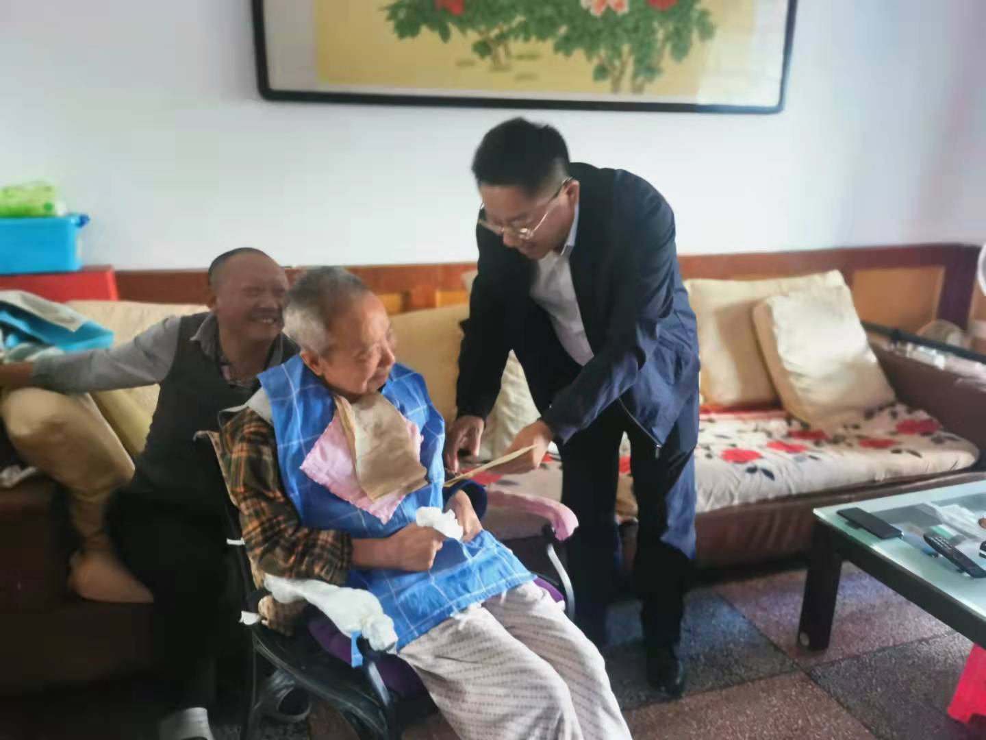 “感谢您的关心”,退休干部高新校坐在轮椅上拿着笔在小黑板上颤颤抖抖的写下6个字。10月13日,市司法局党组书记、局长高杰和党组成员、政治(警务)部主任余磊一行来到局退休老党员高新校家中,详细了解身体健康、家庭生活等情况,为他送去节日的问候和组织的关怀。