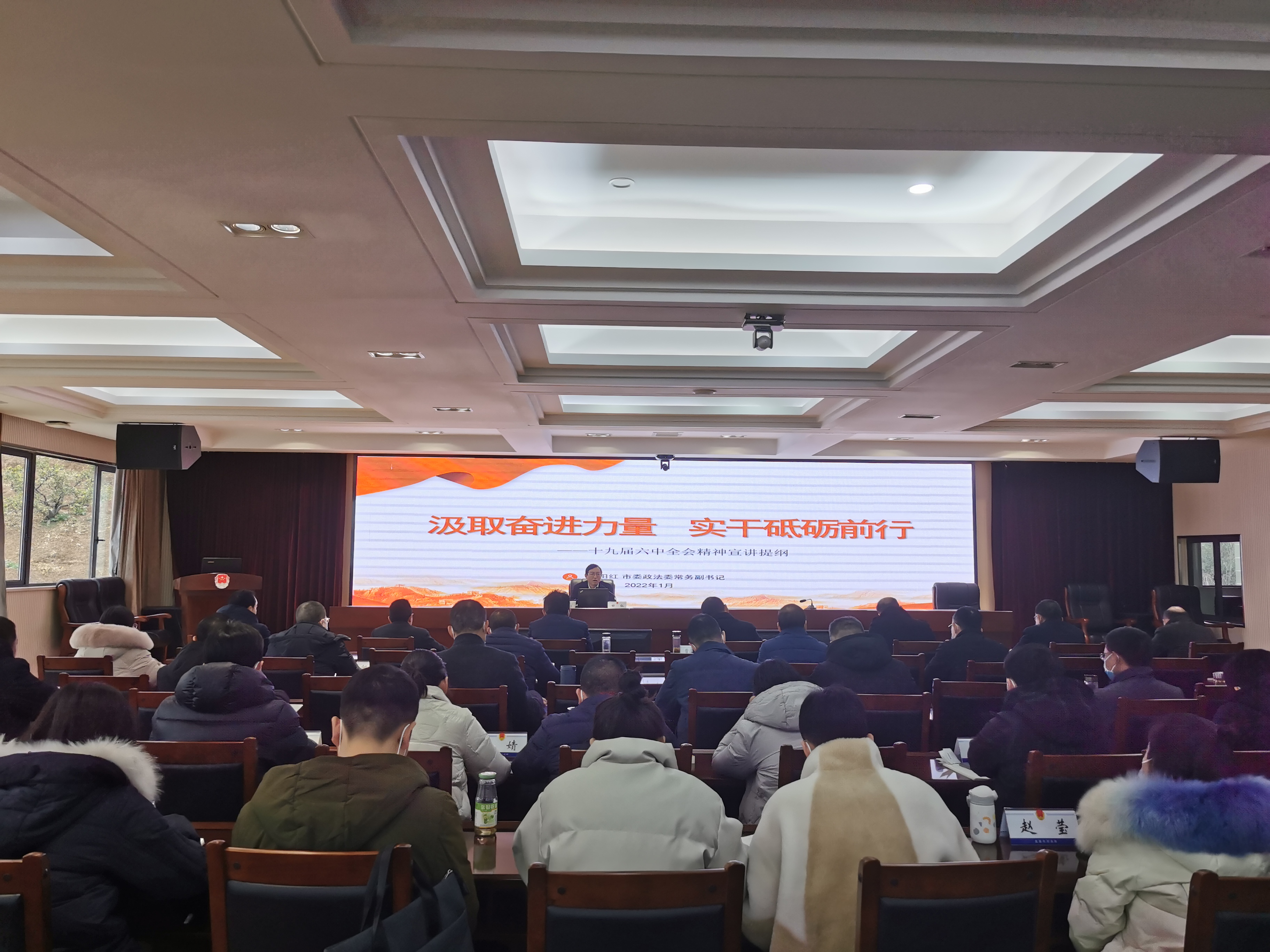 1月13日,学习贯彻党的十九届六中全会精神宣讲报告会在市司法局举行。市委宣讲团成员、市委政法委常务副书记田红同志作宣讲报告,市司法局党组成员、副局长曹正权主持报告会。