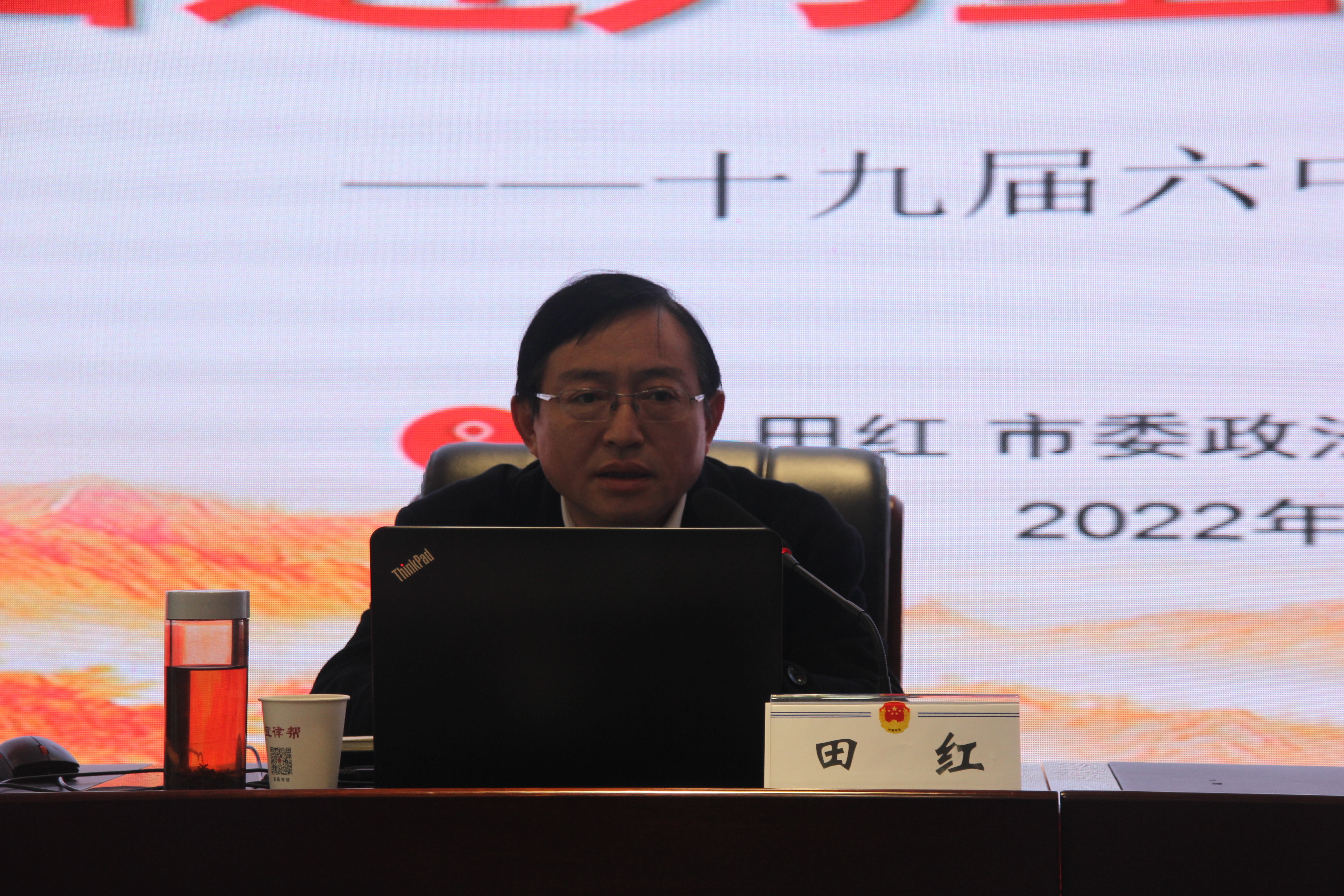 田红围绕《汲取奋进力量 实干砥砺前行》主题,从党的三个历史决议深刻认识十九届六中全会的重大历史意义,党百年奋斗的光辉历程、辉煌成就、历史意义,以及从全会精神中汲取力量推动政法工作高质量发展三个维度,对党的十九届六中全会精神作了全面准确、系统深入的讲解。宣讲报告站位高远、内涵丰富、精彩生动,对准确把握中央会议精神,奋力推进全面依法治市和司法行政工作高质量发展具有重要指导作用。