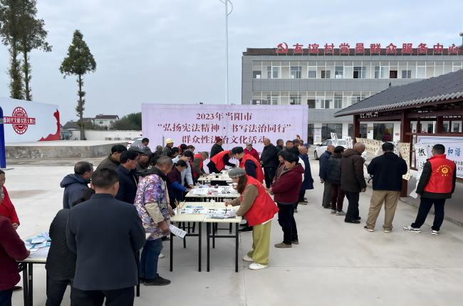 为深入学习贯彻党的二十大精神,切实做好法治文化与优秀传统文化的有机结合,让法治文化沉淀下去、活跃起来,11月15日,当阳市司法局联合市文联走进两河镇友谊村法治文化广场,围绕“弘扬宪法精神·书写法治同行”主题开展法治书画创作活动。
