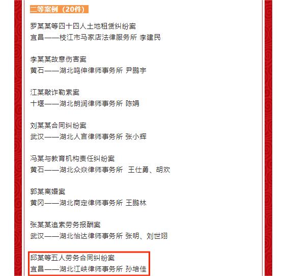 近日,湖北省司法厅发布通报,公布第七届全省法律援助百优案例评选结果,伍家岗区法律援助律师孙培佳承办的两起案件分别获评“二等案例”和“优秀案例”。