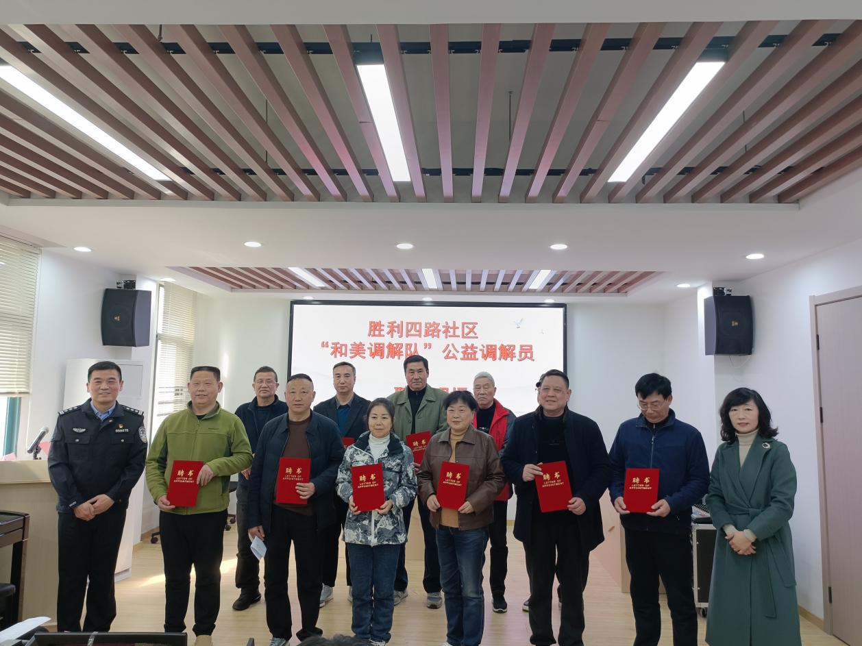 为切实加强基层人民调解组织的队伍建设,3月12日下午,伍家岗区大公桥司法所、胜利四路社区、“小丁哥”矛盾纠纷调解工作室从辖区内各小区的热心群众和党员中选取一批志愿者成立“和美调解队”,同步吸纳进大公桥街道矛盾纠纷多元化解人才库中,并为队员颁发调解员聘书。