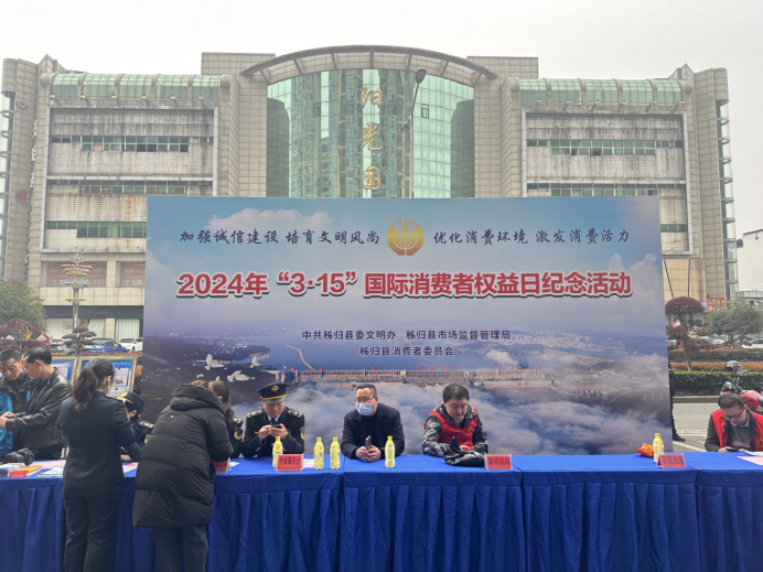 为进一步强化消费者维权意识,保障广大群众的合法权益,在第42个国际消费者权益日来临之际,秭归县在万象国际城正门开展消费者权益保护主题普法宣传活动。