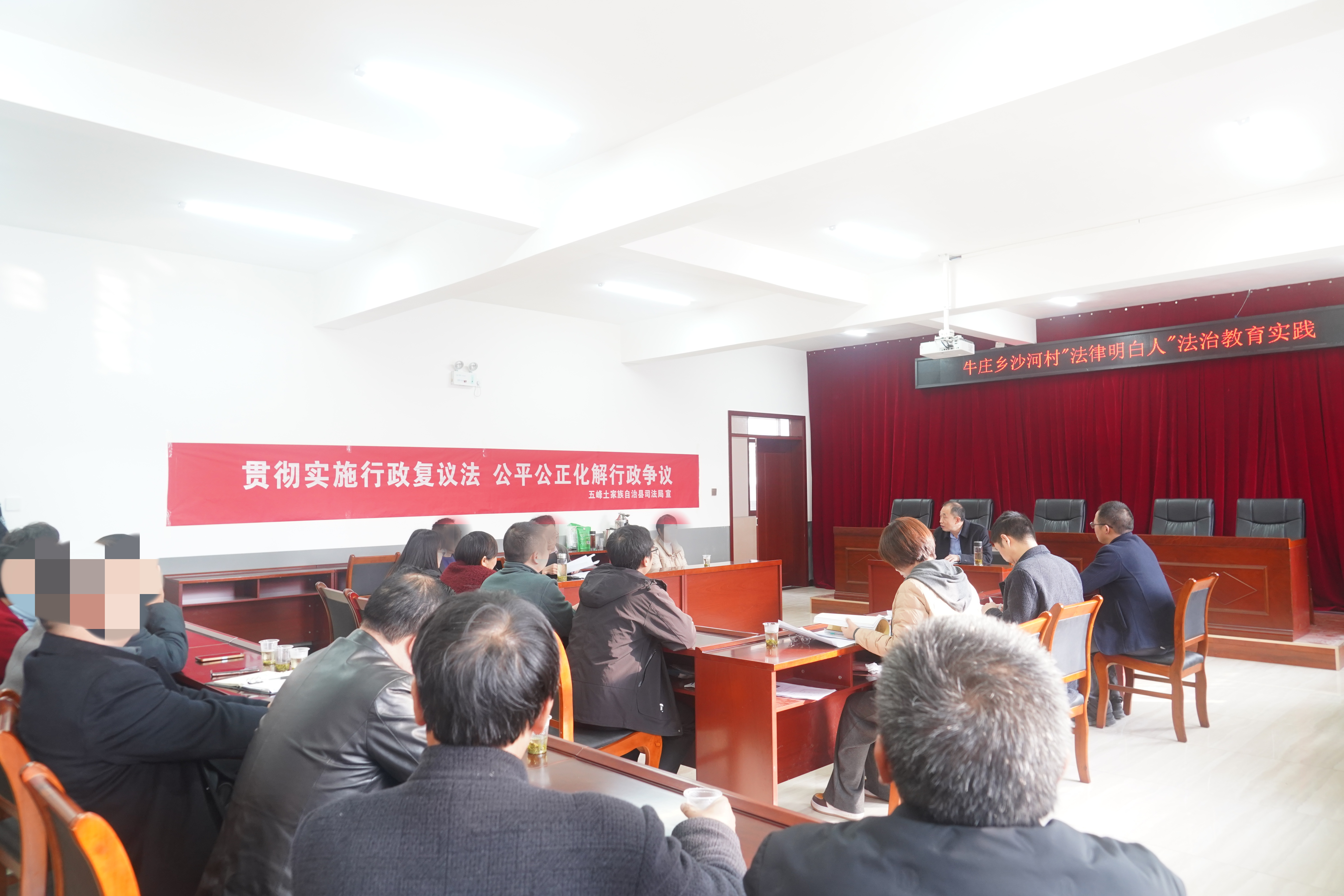 为了深入贯彻“复议为民”理念,让群众少跑腿,11月15日,五峰土家族自治县司法局到牛庄乡沙河村就一起工伤认定行政复议案件组织召开了听证会,将听证现场搬进了村委会、开到了群众“家门口”。