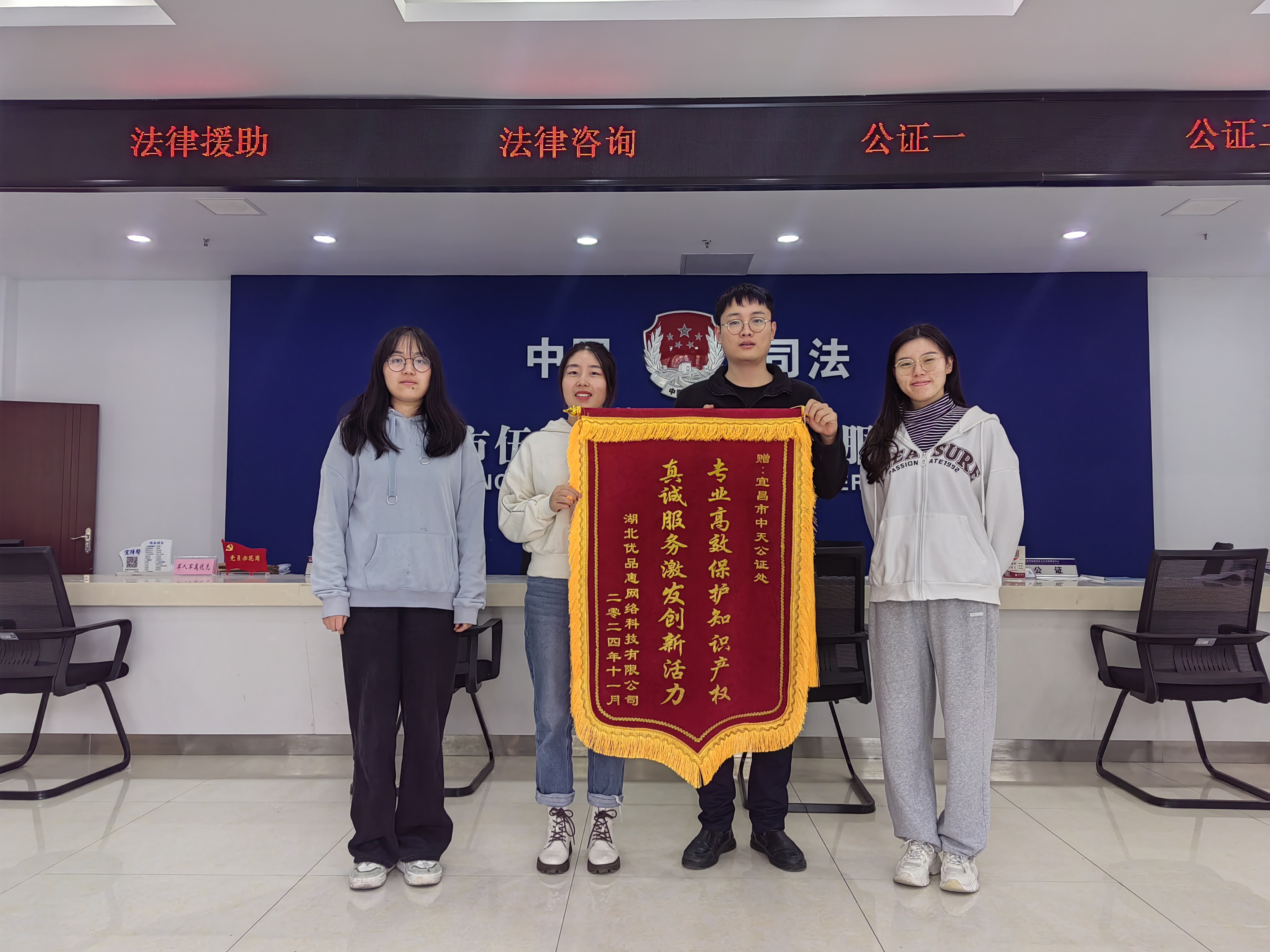 “在你处办理保全证据公证的案件在后续诉讼过程中全部胜诉,非常感谢你们!”近日,湖北优品惠网络科技有限公司代理人来到中天公证处,将一面印有“专业高效保护知识产权,真诚服务激发创新活力”的锦旗送到公证人员手中,感谢公证处助力维护公司合法权益。