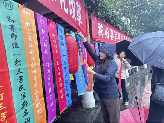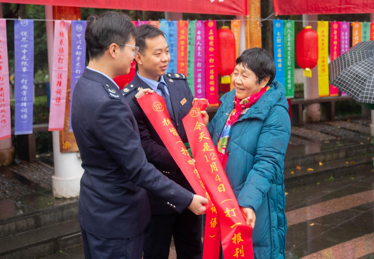 尽管活动现场细雨绵绵,却丝毫未能阻挡过往群众高涨的参与热情。过往群众纷纷点赞,表示:“这次集中宣传活动真是内容丰富、形式新颖,既有奖品拿,又能学到实用的法律知识,真是受益匪浅!”
