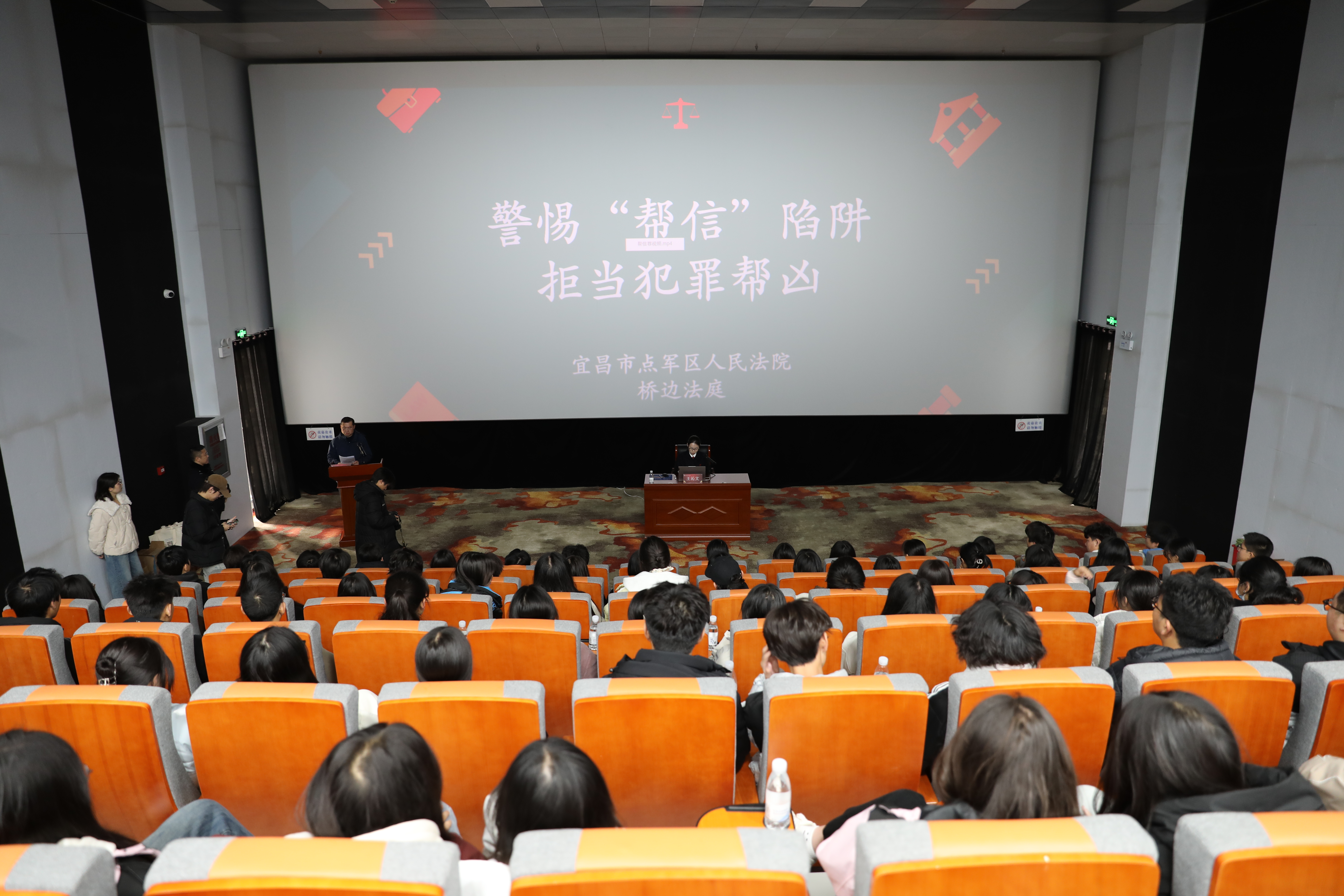 随后,民基(点军)律师事务所郑黎明律师用通俗易懂的语言,围绕宪法的简史、特征、发展历程等内容展开生动讲解,阐述了宪法作为国家根本大法的崇高地位。桥边法庭干警王沁文运用贴近学生生活的案例,深入浅出地剖析了“帮信罪”的危害性,同时叮嘱同学们注意保护个人信息。