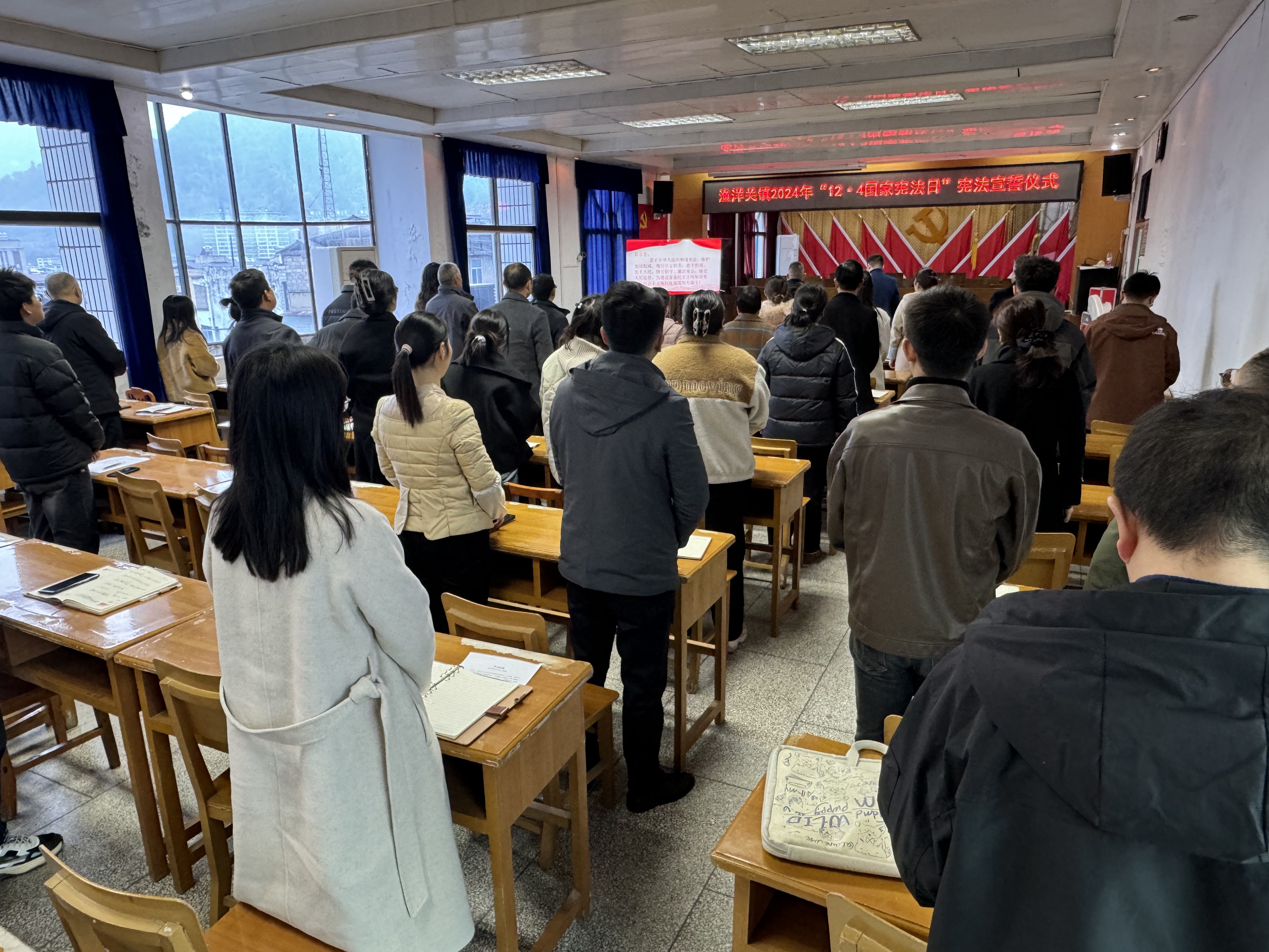 “宪”在宣誓,干部先行。活动首日,渔洋关镇组织全镇领导干部开展宪法集体宣誓,集中观看宪法视频,学习宪法知识,进一步增强领导干部依法执政、依法行政、依法办事的意识和能力。