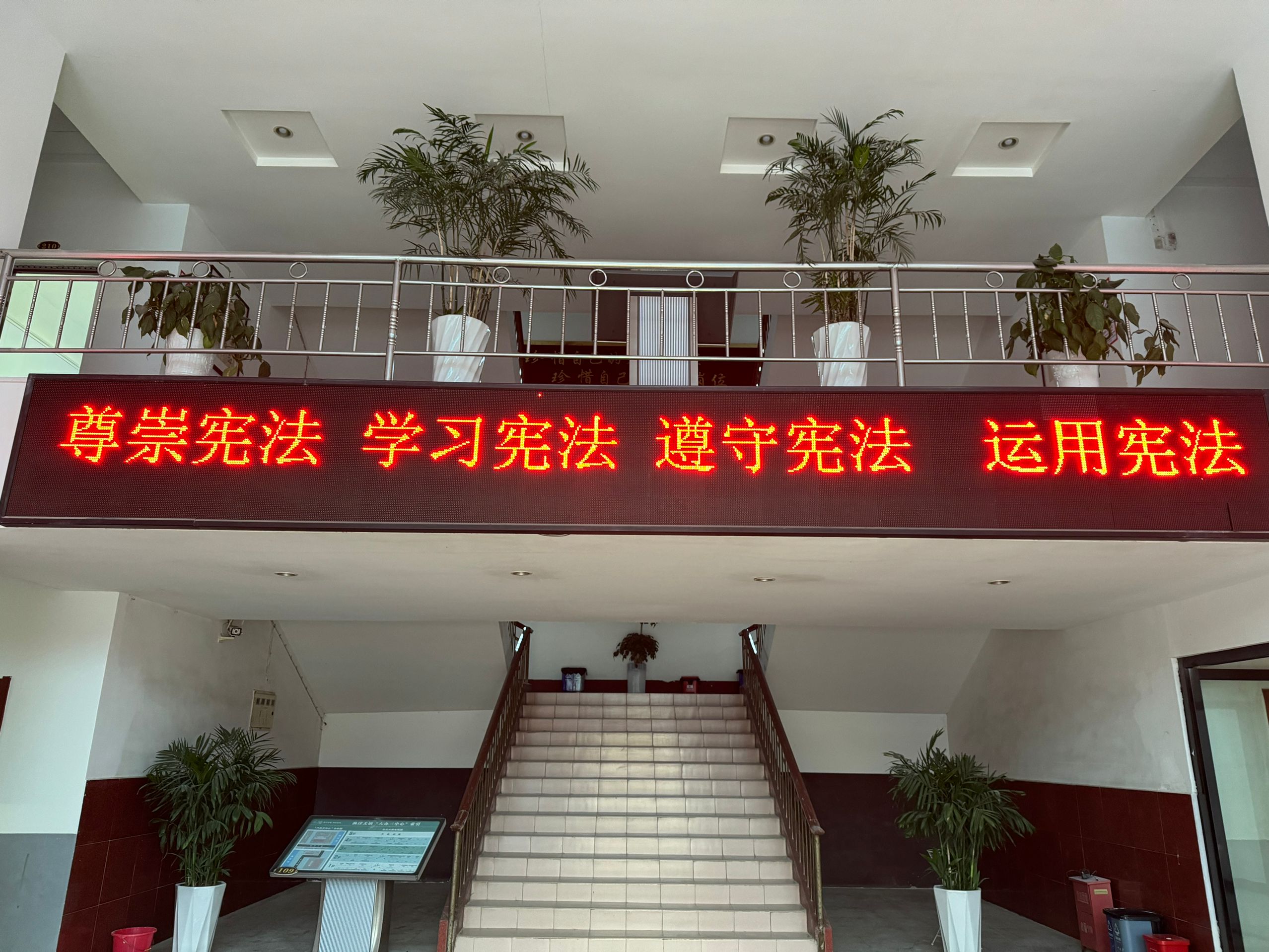 “宪”在屏幕,法治常新。利用多媒体宣传平台,借助LED电子显示屏滚动播放宪法宣传标语和视频,通过“锦绣渔洋”微信公众号等新媒体推送宪法知识,营造浓厚氛围。