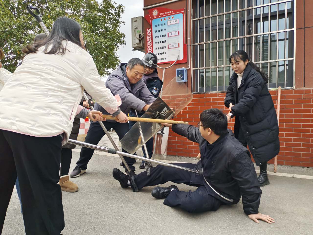 来自公安系统的法治副校长们组织开展防恐演练,模拟不法分子闯入校园场景,从警报拉响到师生疏散、安保人员制服“歹徒”,每一个环节都紧张有序,师生们通过沉浸式参与进一步提升了安全防范意识和自救互救能力。