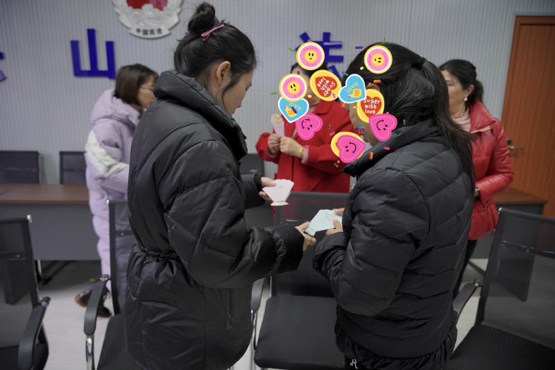 女干警与女性社区矫正对象开展“结对”活动,双方互赠花朵卡片,交换联系方式,用“悄悄话”方式深入交心谈心。在充满暖意的氛围里,“结对”过程中三三两两不由自主地拥抱在一起,还有的社区矫正对象泛出了激动又幸福的泪花。