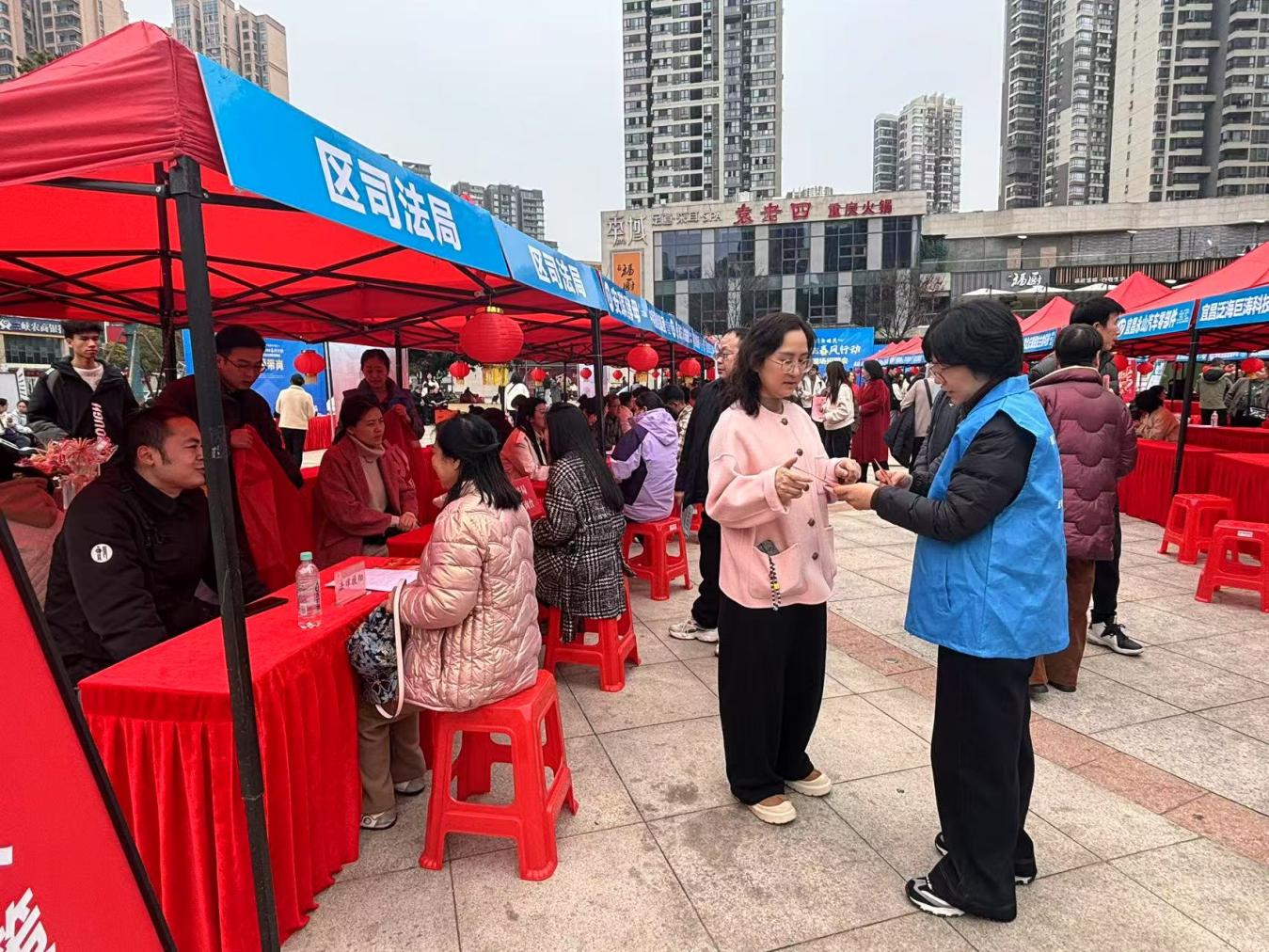近日,“春风行动暨服务高校毕业生现场招聘会”在新华广场举行,伍家岗区司法局法律援助中心委派律师、宝塔河司法所蓝色风信子志愿服务队组成的普法志愿团走进活动现场,为群众提供可感可及的惠民服务,全力服务保障企业用工和群众就业,共提供法律咨询12人次,发放普法资料100余册。