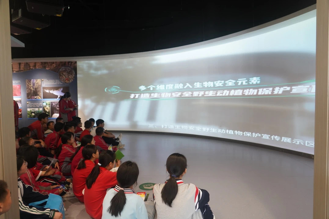 活动现场,工作人员为学生们带来生动的国家安全知识课,运用丰富的典型案例对国家安全、生物安全、野生动植物保护等知识进行串联讲解,诠释国家安全的内涵和野生动植物保护的意义,并通过看视频找答案赢奖品的形式激发同学们的学习热情,积极参与互动。为加深学习印象,生态法治讲解员还带领同学们参观了生物安全主题展厅,通过各种各样的图文展板、野生动植物实物标本、珍稀动物实时生存直播视频等,引导同学们沉浸式感悟生物安全的重要性。